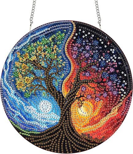 Reofrey Diamond Painting Adulte Pendentif avec Chaîne Beaux Elfes, 20x20 cm Hanging Diamant Painting Double Face, Attrape-Soleil en Cristaux DIY, pour Jardin Maison Décoration de Fenêtre Et de Porte