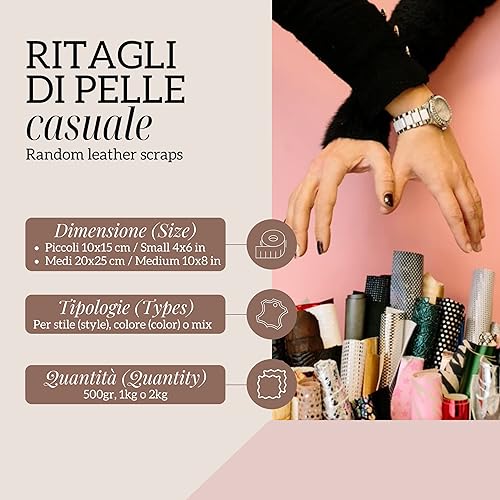 La Garzarara – Chutes de Cuir Unis – Minimum 10x15 cm – 1kg – Sélection Aléatoire pour Artisanat, Couture et Créations Fait-Main – Métallisés, Lisses ou Non - B 186