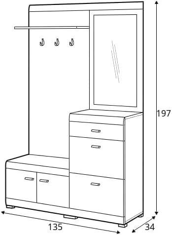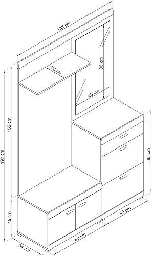 Ensemble de Meubles d'entrée avec Miroir, et Étagère Meuble de Rangement pour Chaussure MIRRELA (Blanc+Chêne Riviera, 135x197x34cm)