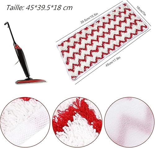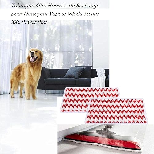 Tohrugue 4Pcs Housses de Rechange pour Nettoyeur Vapeur Vileda Steam XXL Power Pad,Remplacements de Tampons en Microfibre,Lavable en Rouge