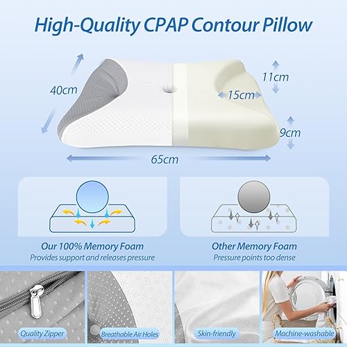 HOMCA Oreiller CPAP en Mousse à Mémoire de Forme Réduit la Pression du Masque Facial et Les Fuites d'air, Oreiller pour Dormir sur Le Côté pour Tous Les Masques CPAP, avec Taie d'oreiller Fraîche