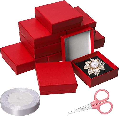 Glarks 12PCS 3,5 x 3,5 x 1,1 pouces bijoux coffret cadeau, boîte à bijoux festonnée rose pour anneaux, boucles d'oreilles, Noël, anniversaires, fête des mères et autres fêtes