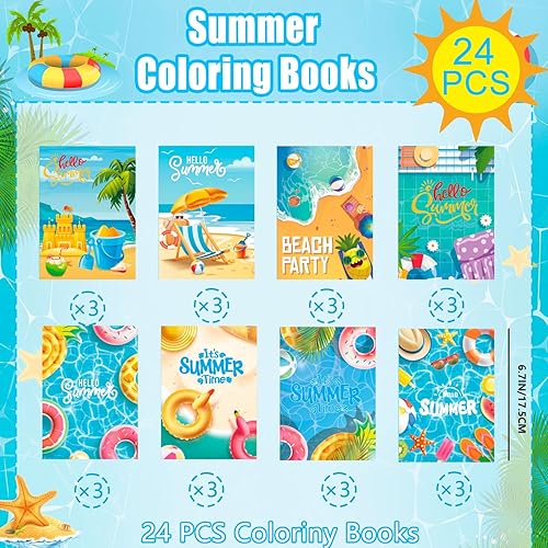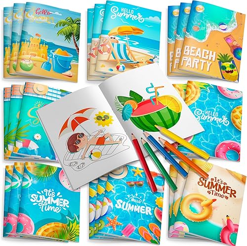 Lot de 24 mini livres de coloriage d'été pour piscine en vrac, mini livres de coloriage pour loisirs créatifs, dessin, pastèque, ananas, noix de coco, flamant rose, décorations de fête hawaïennes