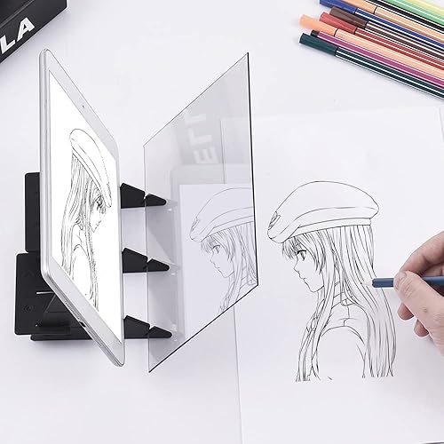 HUIOP Outils de Dessin,Dessin Optique Panneau de traçage Portable Esquisse Outil de Peinture Animation Pavé de Copie Aucun chevauchement Ombre Miroir Projecteur de réflexion Jouet à Base zéro pour