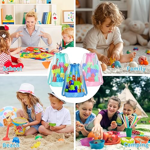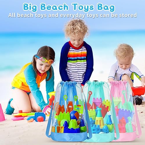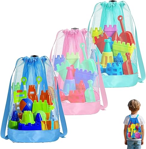 3 Pièces Sac de Rangement pour Jouets de Plage,Sac de Plage en Filet Pliable,Grand Sacs à Jouets Plages en Maille pour Enfants Natation Voyage de Plage Vacances Stockage
