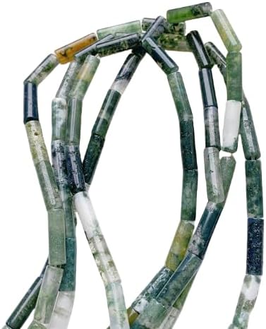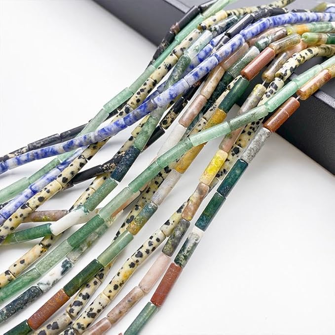 Namzi Lot de 20 petits tubes ronds en pierre naturelle de 4 x 13 mm - Texture verte - Perles séparées - Pour bracelets et colliers - Accessoires faits à la main