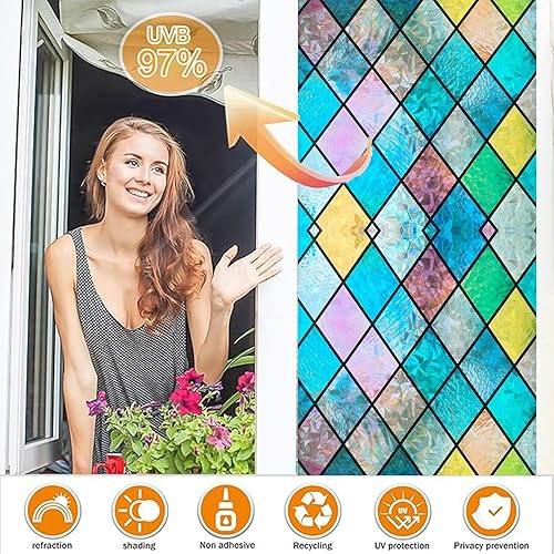 Film Opaque Fenetre 110 x 210 cm, Opaque, Statique,Anti-Ultraviolet,Blocage de Lumière,Réutilisable, Film Anti Regard Film Electrostatique, avec Outil, pour Salle, Grille Cristal