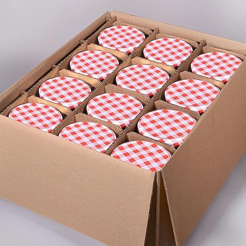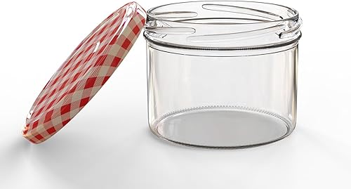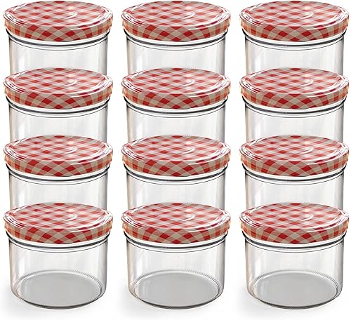 Oputec Lot de 12 bocaux de 230 ml avec couvercle à visser rouge à carreaux – Parfait pour les confitures, les confitures et plus encore, petits bocaux avec couvercle, idéal comme mini pots à confiture