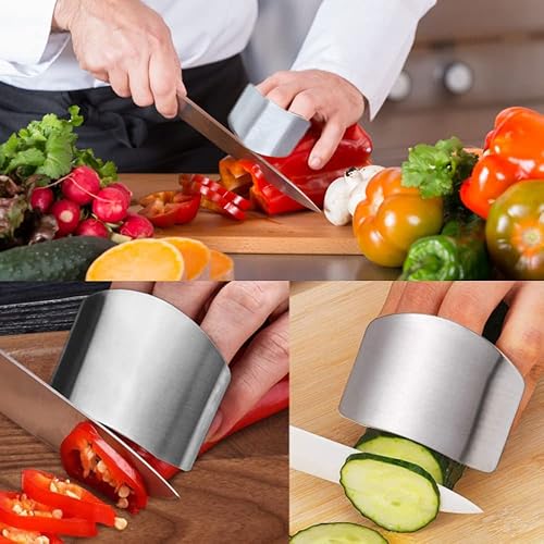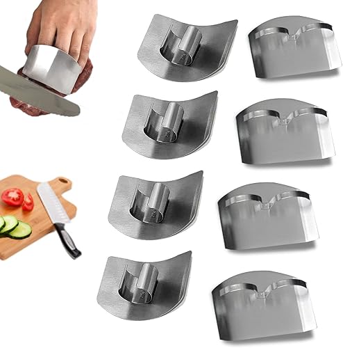 Sunbbingsp 8 Pcs Finger Guard Acier Inoxydable, Protège Doigt Cuisine, Anti Coupe Doigt Cuisine pour Cuisine Trancher Découper Hacher, Argent(Un Seul Doigt + Deux Doigts)
