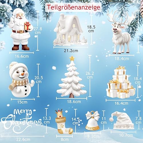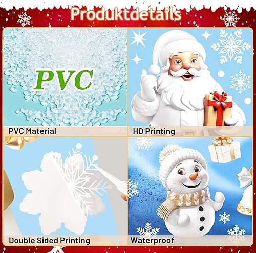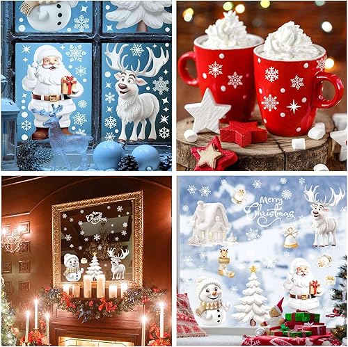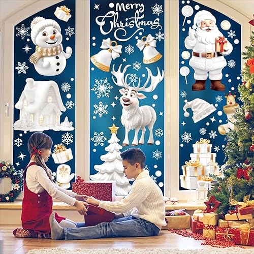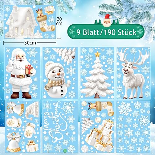 Aonveki Stickers Noël Fenêtre - 9 Feuilles Autocollant à Effet Stéréoscopique Blanc, Flocon de Neige Père Noël Renne pour Décoration Intérieur Maison