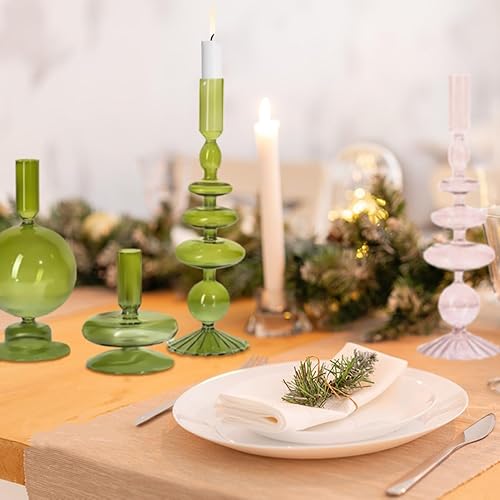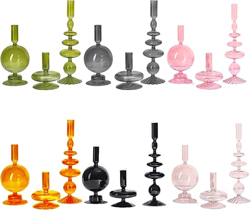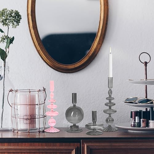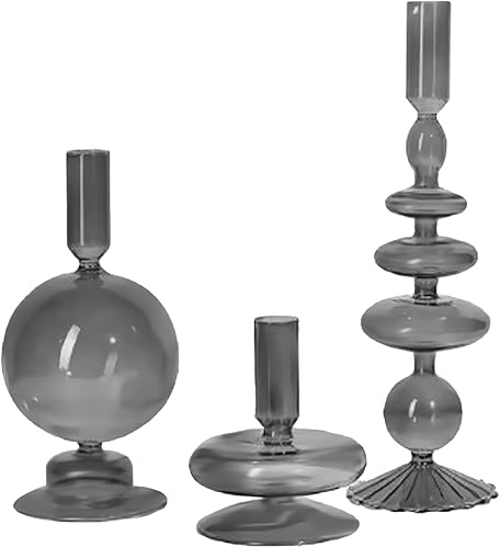 DULRLLY 3 Pièces Bougeoirs en Verre Bougeoirs Modernes pour Pièce Maîtresse de Table Bougeoir Vintage pour Bougeoirs Coniques Bougeoirs Coniques au Design Ondulé Clair pour Fête de Mariage(Gris)