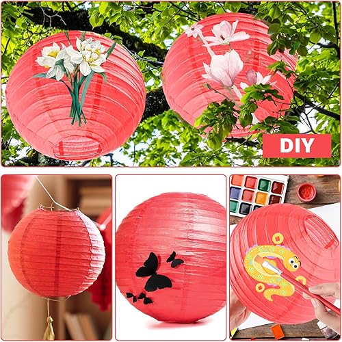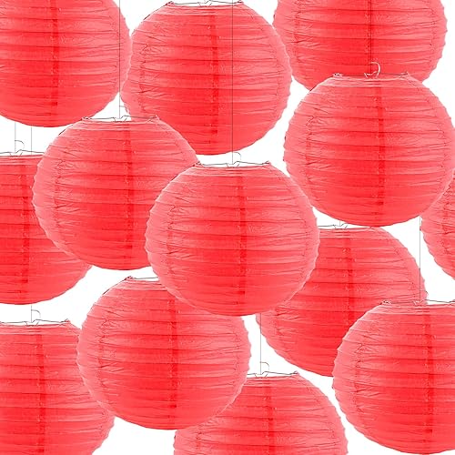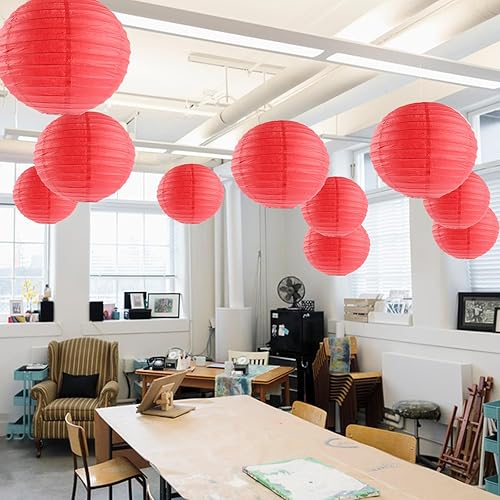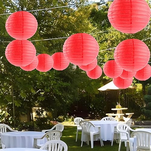 ASelected Lot de 20 lanternes rondes en papier rouge, 25 cm, pour mariages, anniversaires