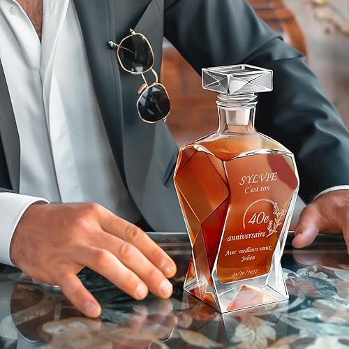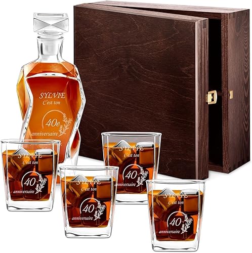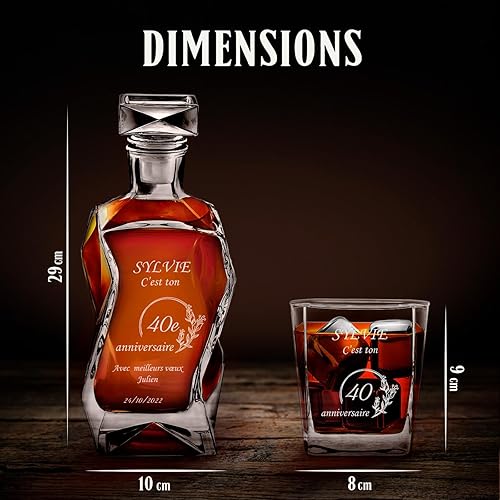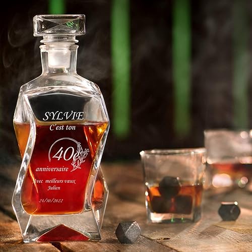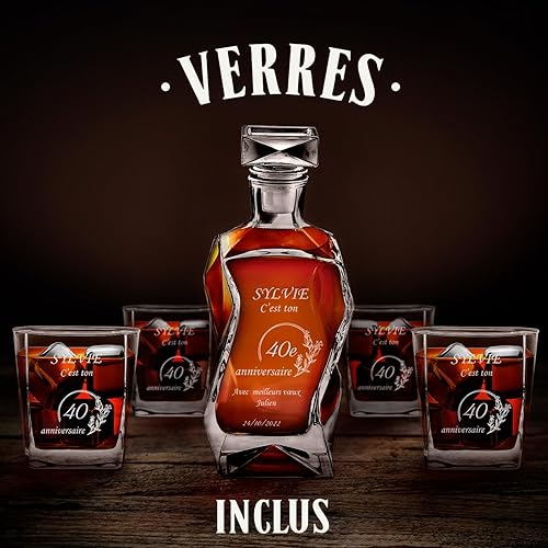 Maverton Ensemble de Carafe gravé avec 4/6 Verres à Whisky, 700 ML Décanteur Whiskey en Verre, Cadeau personnalisé pour Les Femmes - Voeux