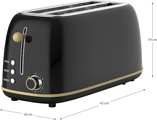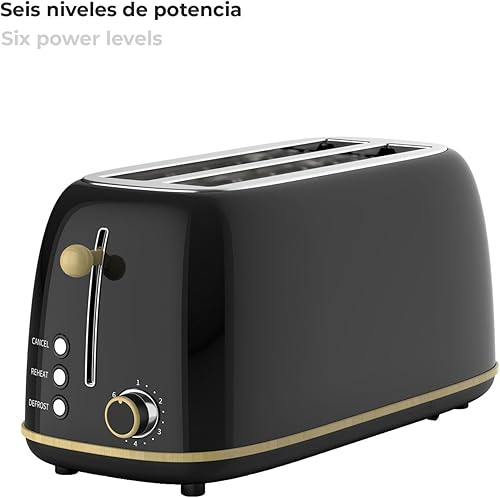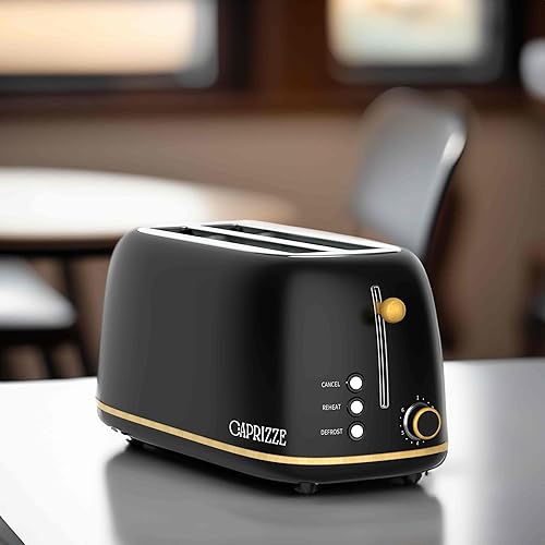 Grille-Pain Caprizze Kaito XL | Double Fente Extra Large et 6 Niveaux de Grill | Design Moderne Effet Bois et Noir Mat