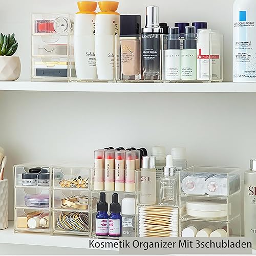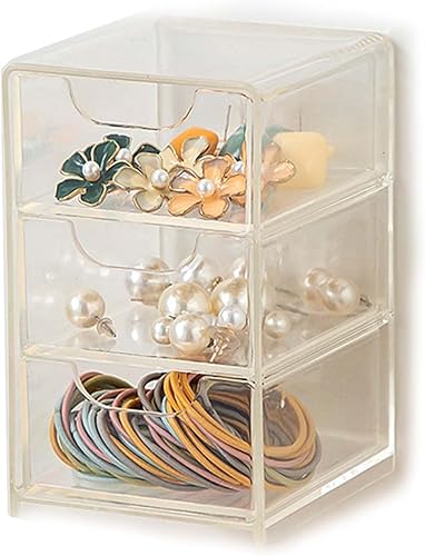 DoocliB Petite boîte de rangement empilable avec 3 tiroirs, en acrylique transparent, pour chambre à coucher, salle de bain, coiffeuse, bijoux, bagues, colliers