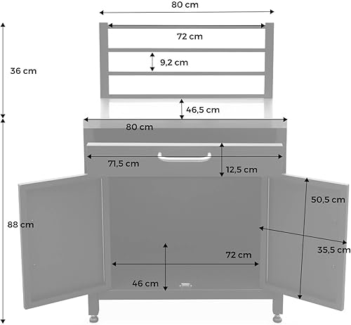 sweeek - Meuble de Cuisine extérieure en Acier avec 1 tiroir et 1 Porte et 1 Grille de Suspension L80