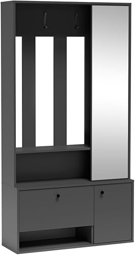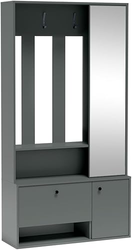 MINIO - Vestiaire avec Miroir 100 cm Largeur, Meuble d'entrée Porto Uni 100, Vestiaire Entrée Moderne, Vestiaire d'entrée Meuble d’entrée Vestiaire - Green Stone