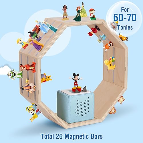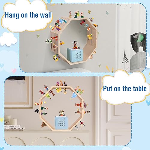 Todeco Étagère magnétique, pour Tonie Box et Tonies, Jusqu'à 60-70 Tonies, Poser ou Murale, Étagère pour boîte à Musique pour Enfant, pour Les Garçons et Les Filles, Octogone