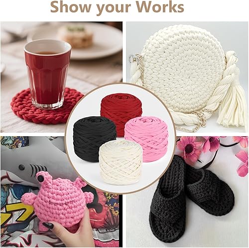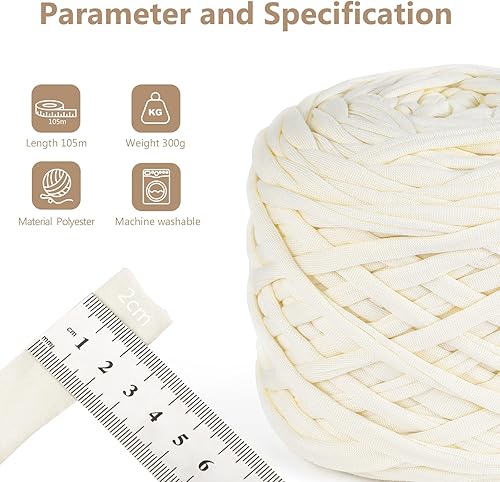 VynyQoo Fil Tee pour Crochet Polyester, Pelote Crochet 105m, 2 cm large Tshirt Yarn, Grosse Tricoter Débutants pour Sac Crochet,Paniers, DIY & Intérieure (blanc)