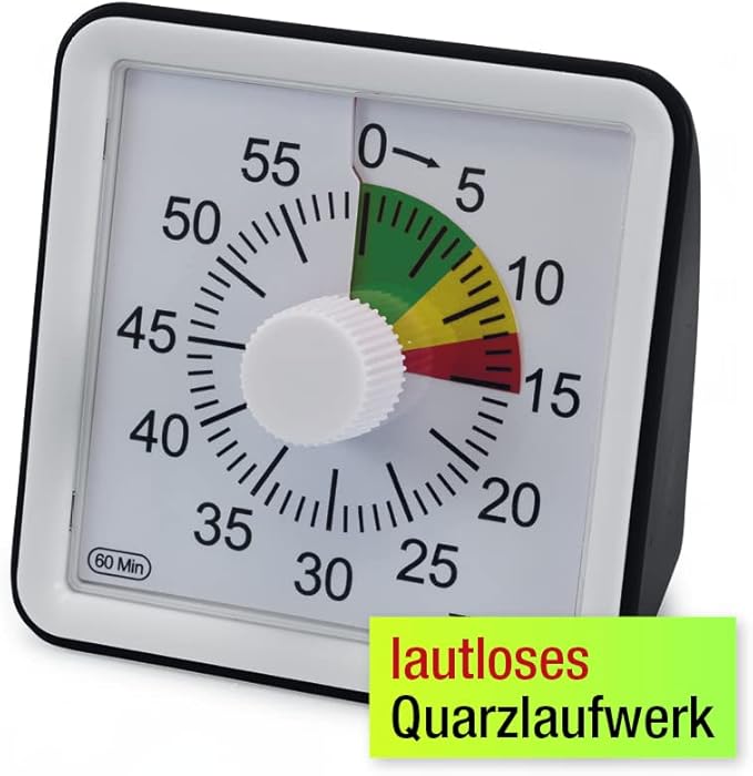 TimeTEX Horloge silencieuse compacte avec cadran déporté - Horloge arrière avec cadran rouge, jaune, verre vert - 61939