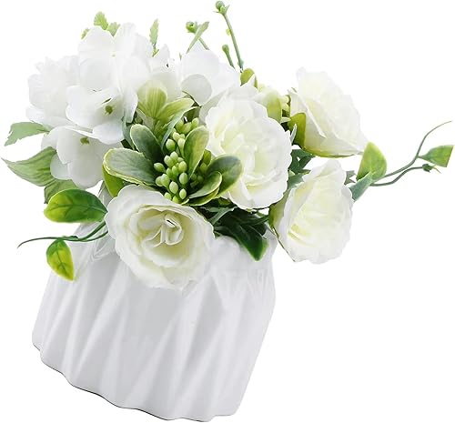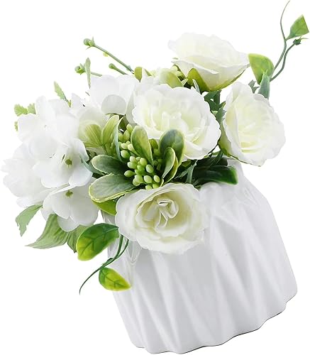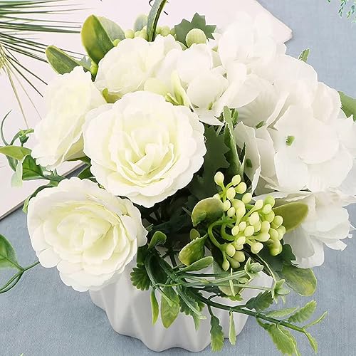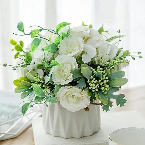 CHAMEEN Fleurs artificielles avec vase en céramique - Fleurs artificielles - Fleurs en soie - Bouquet de mariage - Fête à la maison
