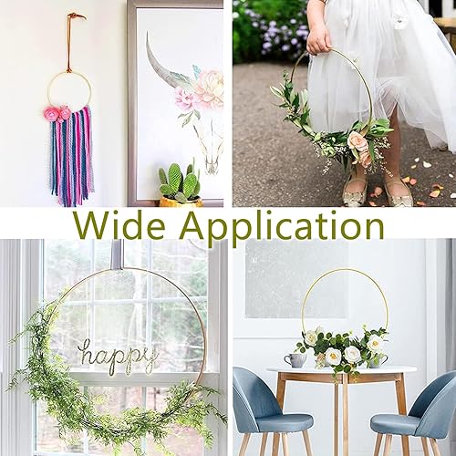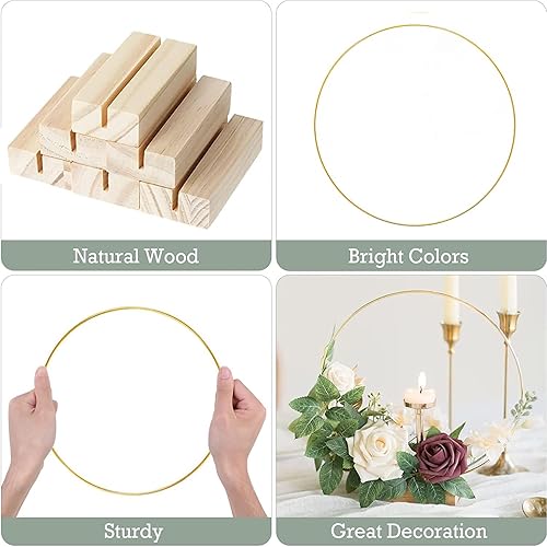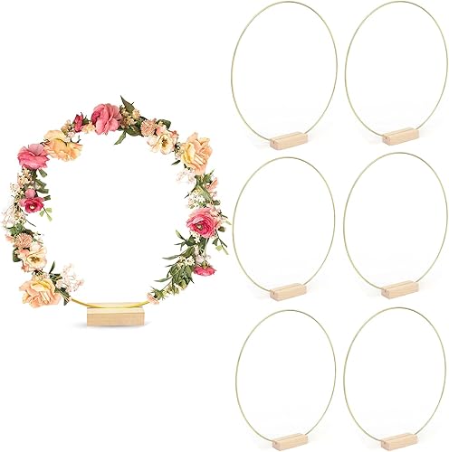 6 Paquets de cerceaux Floraux en métal avec 6 Supports en Bois, Couronne de Fleurs en macramé, Anneaux de cerceaux dorés pour la décoration de Table d'un Mariage DIY (Gold-30cm)