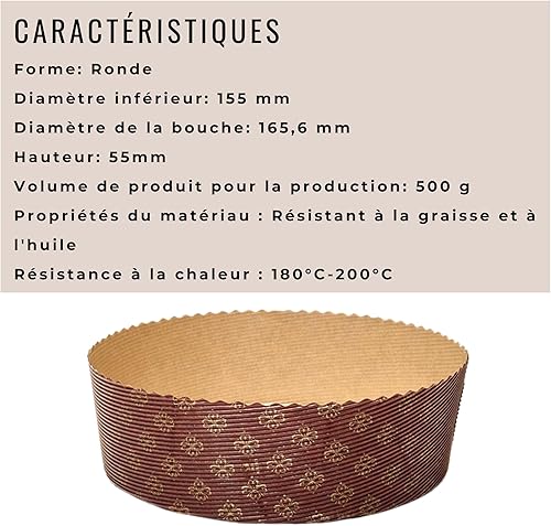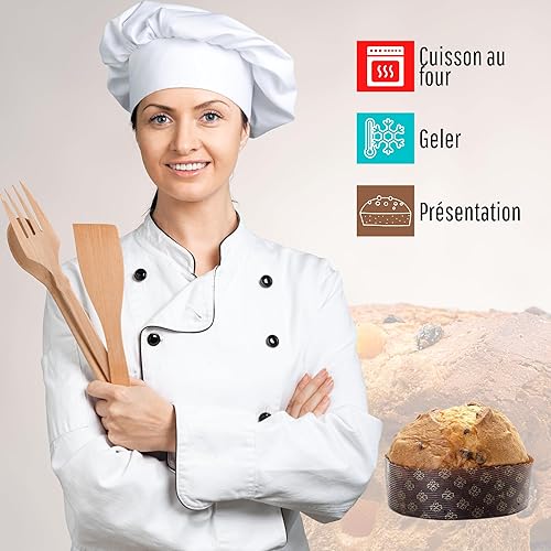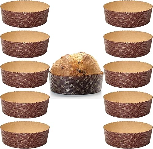 Moule Panettone Bas 500 gr Qualité Premium (10 pièces) - Caissettes Panettone Professionnelles en Papier Ondulé de Pure Cellulose Micro-onde Conçu pour Panettones, Résistant à la Chaleur 220°C