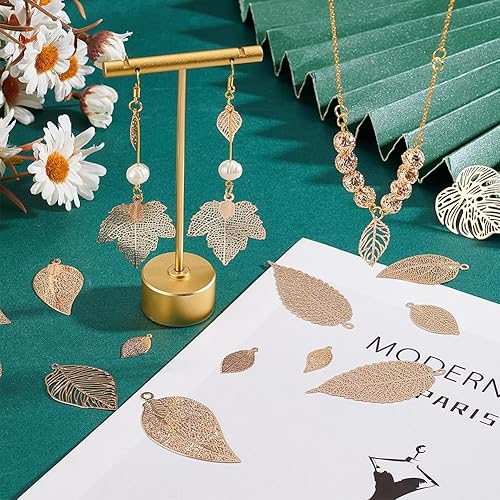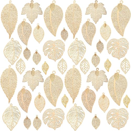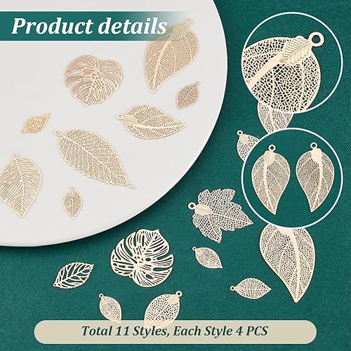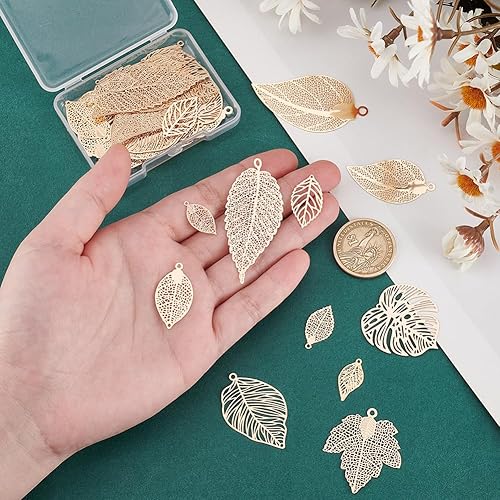 PH PandaHall 44pcs breloque Feuille en Filigrane, 11 style Breloque de Feuille D'Arbre en Laiton Pendentifs de Feuille de Creux Pendentifs de Feuille D'Érable pour Collier, Bracelet
