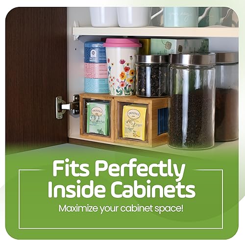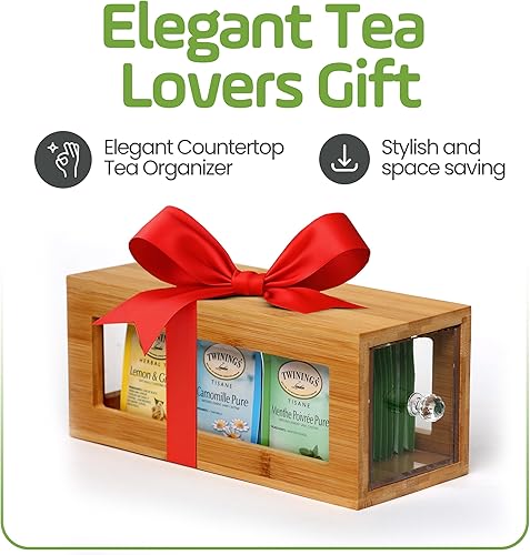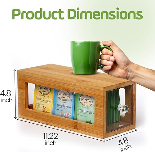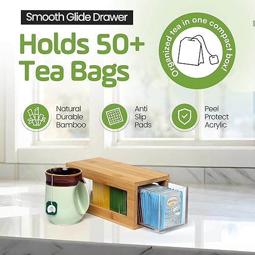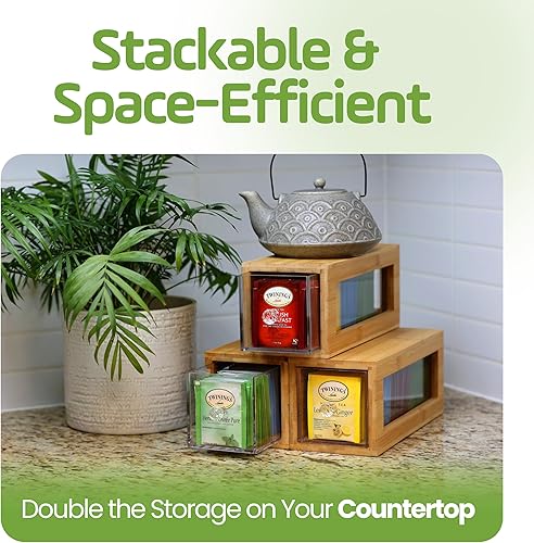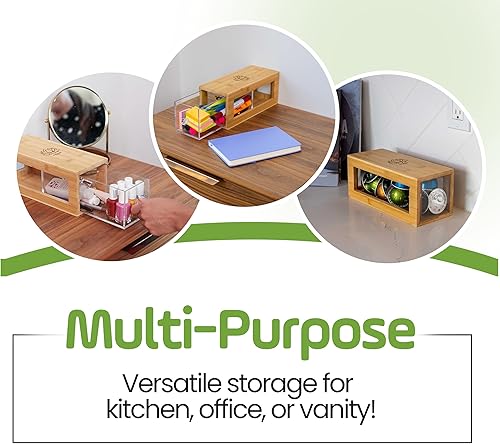 Serenica Homes Élégant cadre en bambou avec tiroir en acrylique, support pour dosettes de café et sachets de thé, organiseur multifonction pour cuisine, salle de bain, maquillage ou médicaments