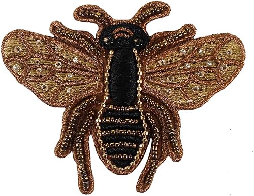 Lot de 2 écussons brodés en perles d'abeilles à coudre pour sacs, chaussures, insignes, vêtements décoratifs (B)
