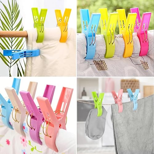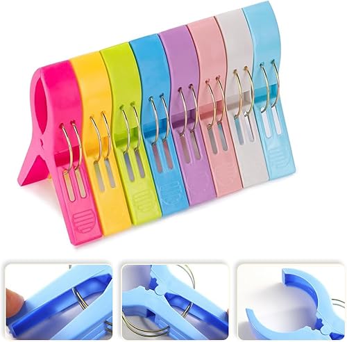 EIYVPRA 8 Pinces Grandes colorées pour Serviette de Plage, Clip de Brise-Vent, Pince a Linge avec des Ressorts, Durable Grosse Pince Plastique pour Vêtements, Serviette, Couettes, Couverture