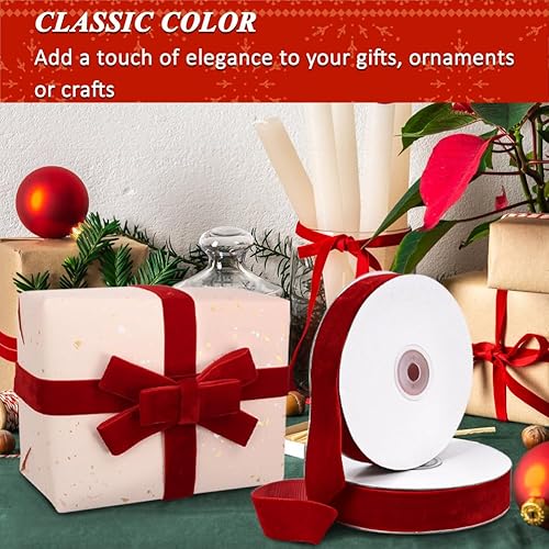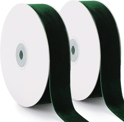 Ruban de velours vert - 25 mm x 18 m - Ruban de velours doux et luxueux pour emballage cadeau, bouquet de bouquets, décoration de mariage et travaux manuels