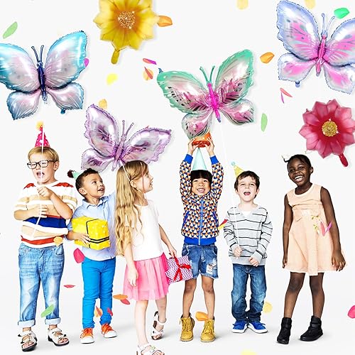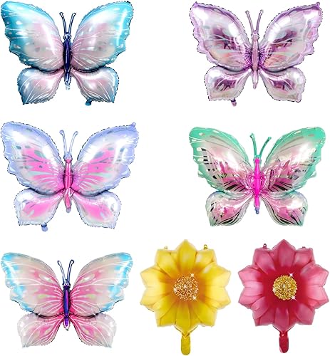 7 Pièces Ballon Papillon Decoration Anniversaire Papillon Ballons Papillon Ballon Fée Ballons en Papier Aluminium Ballon Fleurs Ballon aluminium Decoration Anniversaire Ballon de Papillon Géant