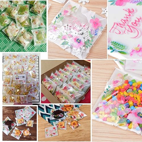 (7 x 7cm) 200pcs Sac Sachet Pochette Transparent Auto-Adhésive Petit Pochon Alimentaire Plastique Emballage Cellophane Biscuit Bonbons Perles Bijoux Cadeau Dragée