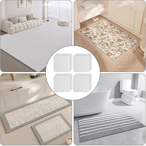 8 Pièces Rug Grippers Anti Derapant Tapis Antidérapant Tapis Grippers Vacuum Tech Anti Glisse Tapis Gardez Votre Tapis en Place pour Cuisine Chambre Salon Salle De Bain (Blanc)