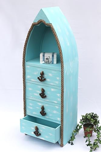 DanDiBo Bateau Commode 412-BL 117 cm Etagère de Salle de Bain Bleue Shabby Armoire Armoire de Bain Meuble pour Salle de Bain Etagère