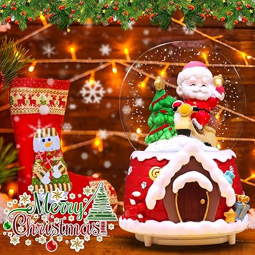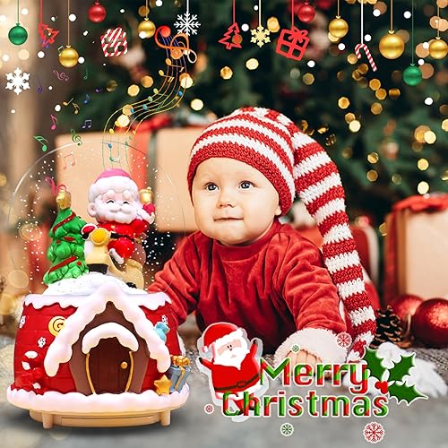 MUOIVG Boule à Neige - Père Noël - Boule à Neige Noël avec Lumières LED à Changement Couleur, Père Noël Neige Arbre Noël Boîte à Musique Boules Cristal Table 13.5x8.5cm