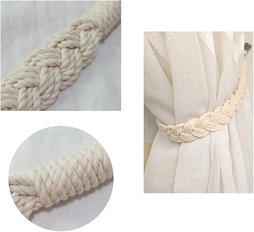 Pamtns Embrasse Rideau 2 Pièces avec 2 Crochet Embrasse Rideaux Embrasse Rideau Blanc Embrasses Aux Rideaux Corde en Coton Crochet Porte Rideau Vintage Rétro Crochets en Bronze