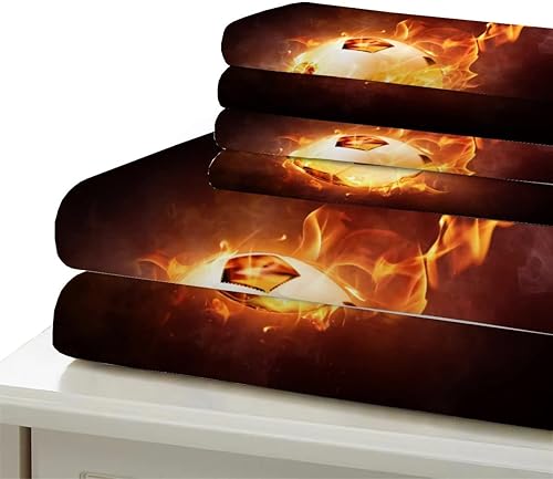 RFFLUX Parure de Lit Football 140x200 cm 1 Personne 3 Pièces Ultra Doux 3D Graffitis Football Housse de Couette en Microfibre avec Fermeture éclair Enfant GarçOn Fille avec 2 Taies d'Oreillers 50x75