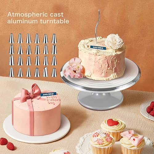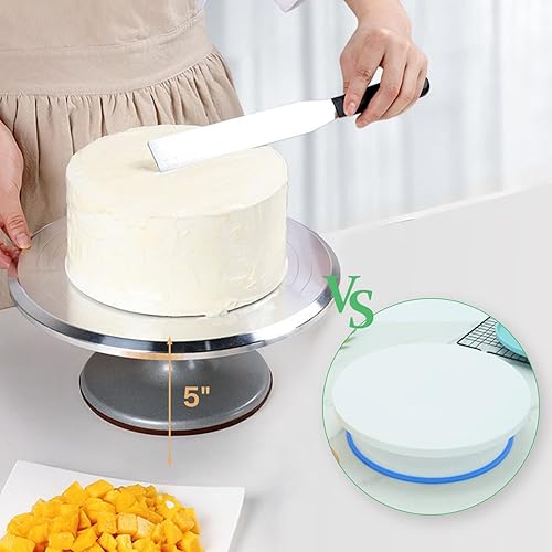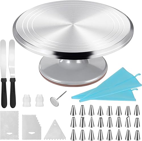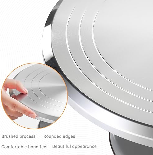 Haiyudz Plateau tournant à gâteau, support rotatif à gâteau avec plateau tournant en alliage d'aluminium de 30,5 cm, comprend un couteau à palette et un grattoir à crème, etc. (argenté)