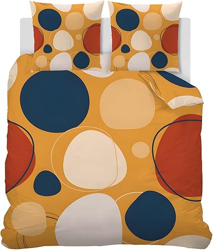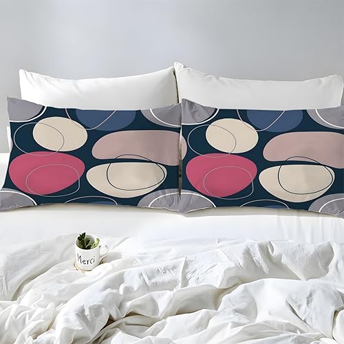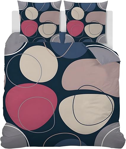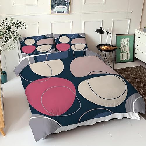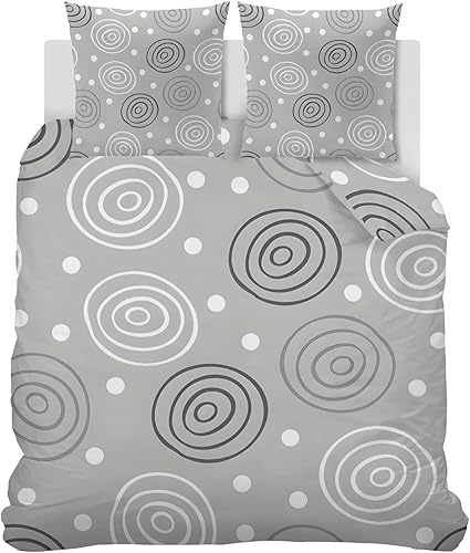 phonxia Housse de Couette 160x200 GéOméTrie Grise Ensemble De Literie Rond Réversible Parure de lit Microfibre avec Fermeture Éclair avec 2 Taie d'oreiller 65x65 cm DY62
