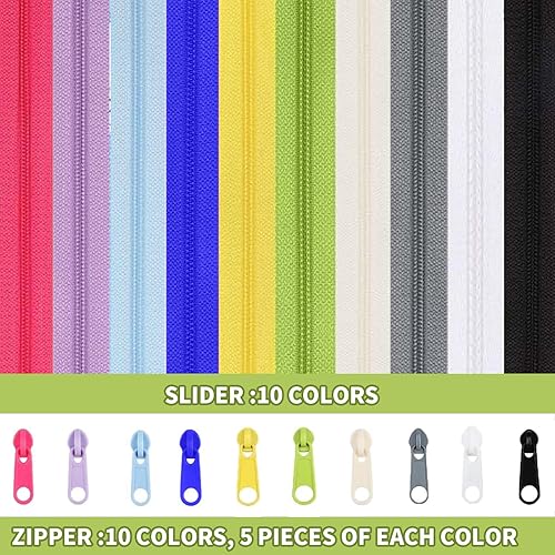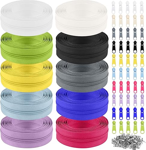 MeYuxg Fermeture éclair sans fin de 3 mm avec fermeture éclair, fermeture éclair DIY séparable, avec 50 curseurs, kit de réparation pour couture, bricolage et sac (10 couleurs)
