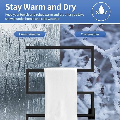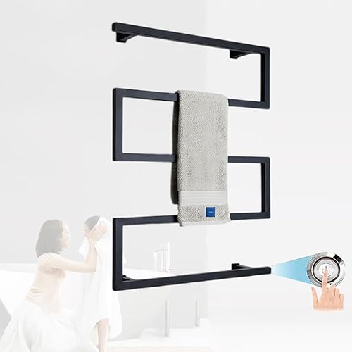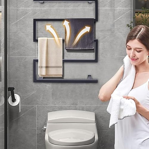 Chauffe Serviette Salle de Bain Noir, Radiateur Sèche Serviette Électrique Porte-Serviettes Mural en Acier Inoxydable, Thermostat Intelligent, 600 x 800mm