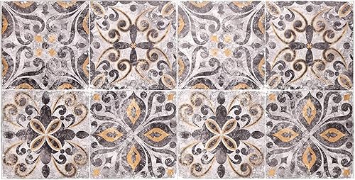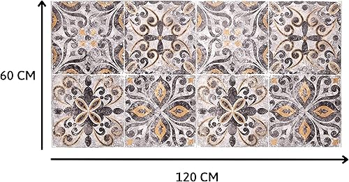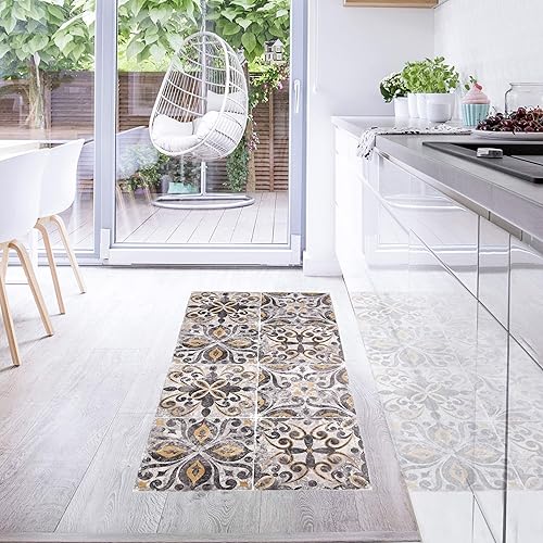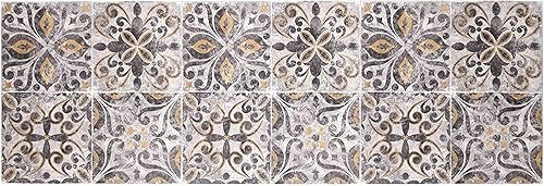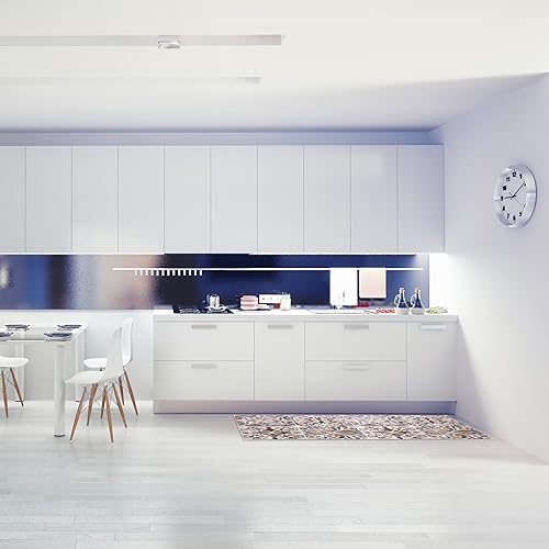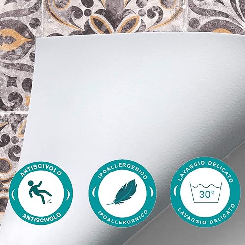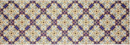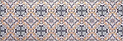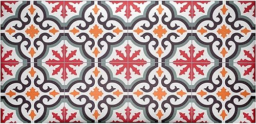 Baroni Home Tapis de Cuisine en PVC Carreaux Motif Faïence, Tapis Cuisine Antidérapant et Lavable, Faïences Rouges et Vertes, 60X180 cm
