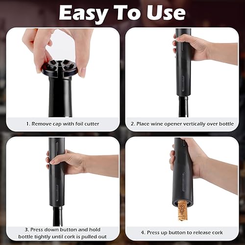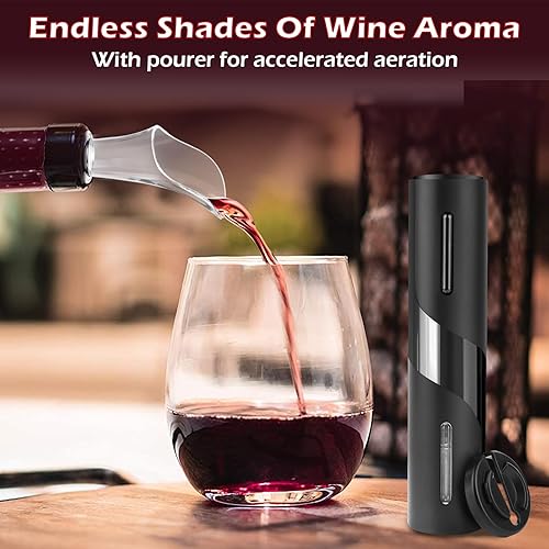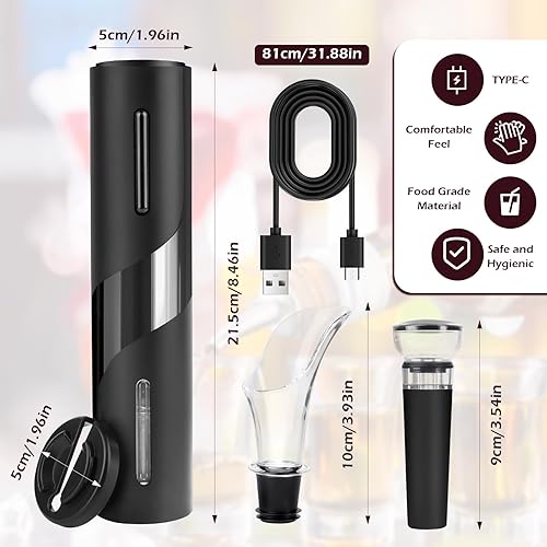 Tire Bouchon Electrique, Ouvre Bouteille Automatique de Vin, Pompe à Vide, Verseur, Bouchon et Cable USB, Ensemble Cadeau de Noël Amateurs de Vins