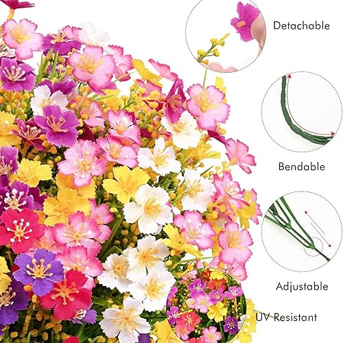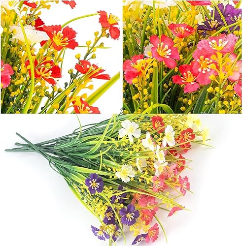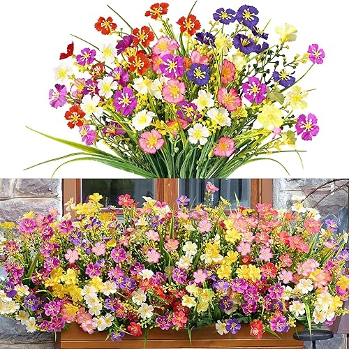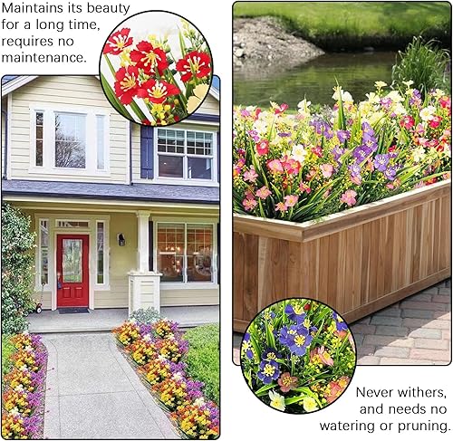 Eymobad Lot de 6 paquets de fleurs artificielles comme de vraies plantes de balcon artificielles - 6 couleurs - Fleurs de printemps artificielles en plastique - Décoration pour l'extérieur, le balcon