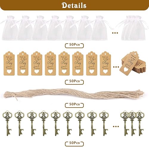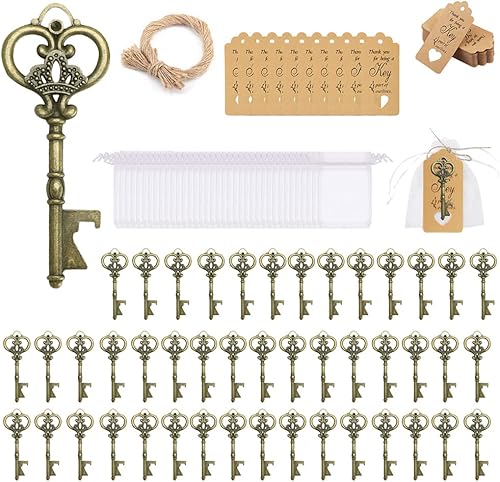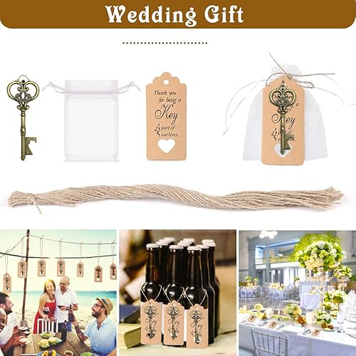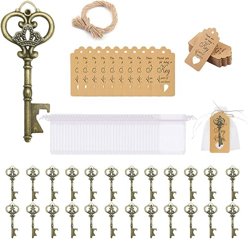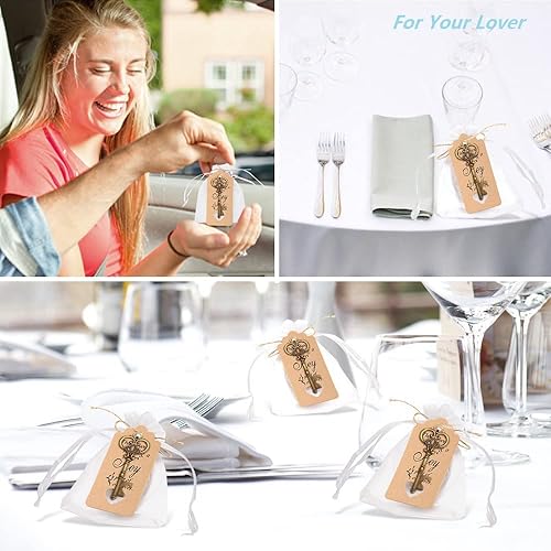 ASANMU Cadeau Invites Mariage, 24 Pièces Clés Vintage, Sachets Pochettes Cadeau en Organza, Papier Kraft Étiquette, Corde de Jute Naturel, Cadeau d'Invité de Mariage pour Baptême Communion Banquet