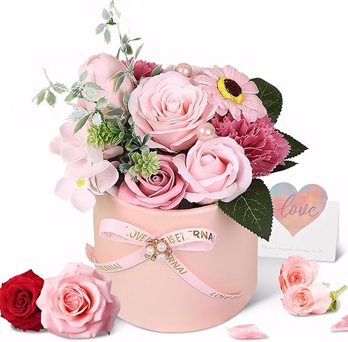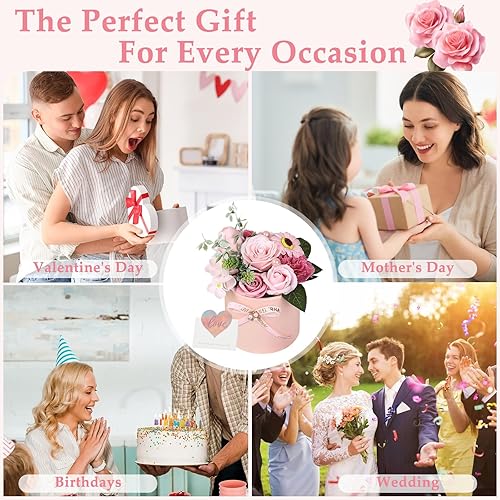 Cyiecw Boîte Cadeau de Roses Éternelles Roses - Bouquet de Fleurs Artificielles Parfumées, Cadeau Romantique pour Mère/Petite Amie/Épouse/Grand-mère, Saint-Valentin Anniversaire Noël Fête des Mères