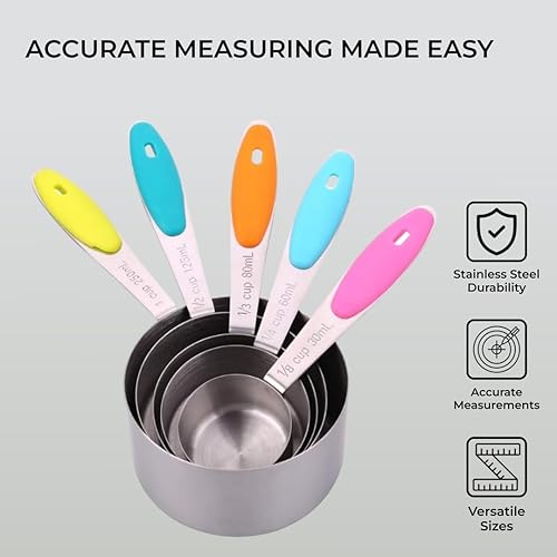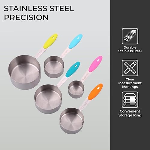 H&S Cuillères à mesurer en métal en acier inoxydable pour la cuisson Ensemble de 5