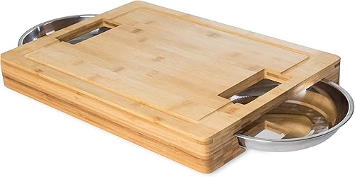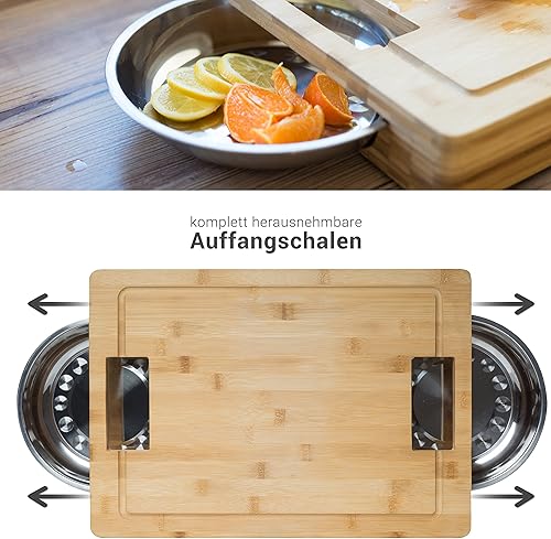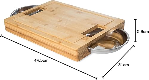 Planche à découper avec égouttoirs ~ bambou ~ avec rainure ~ avec les pieds ~ meilleure qualité ~ 44,5 x 31 x 5,8